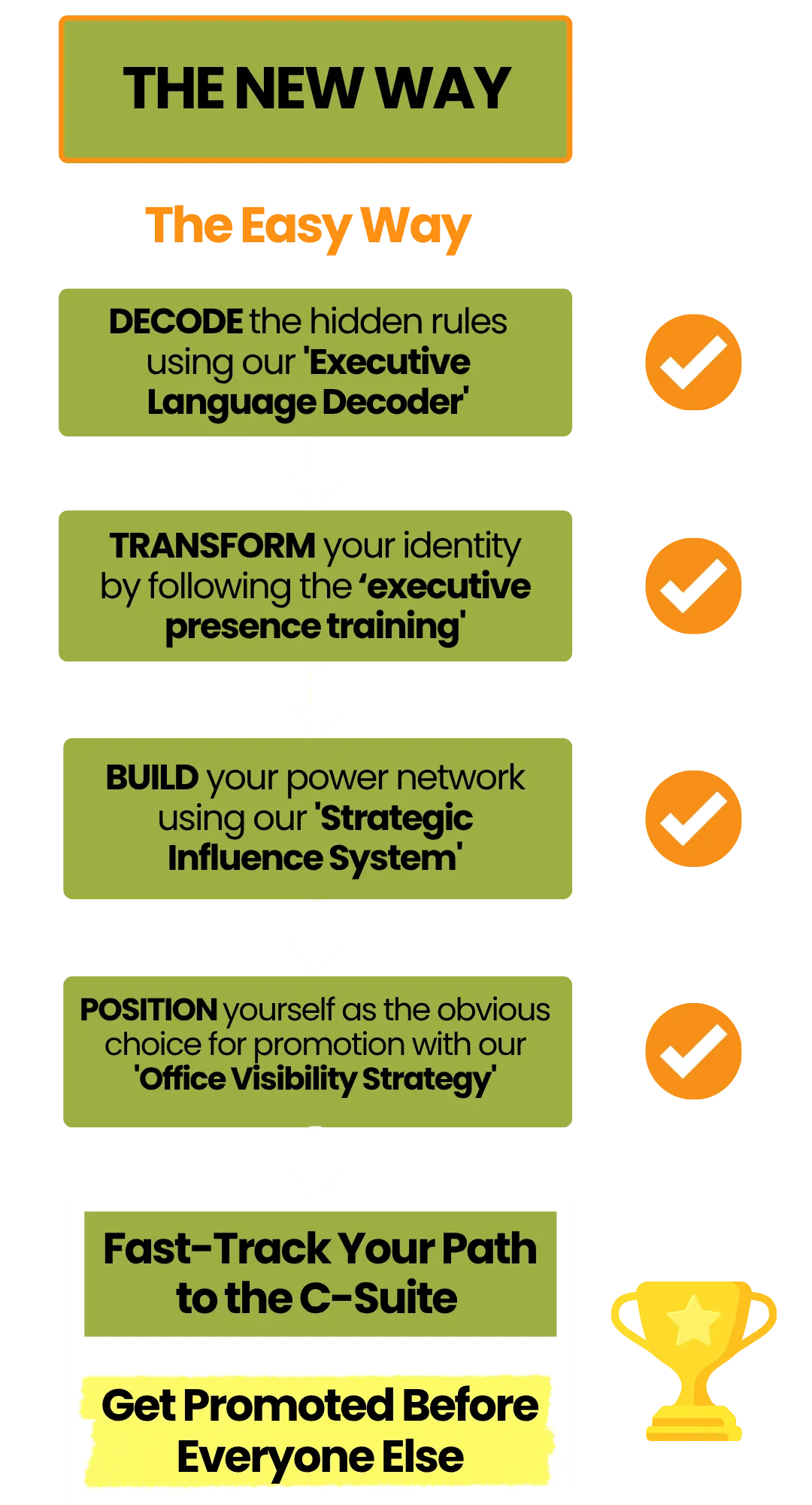 You get access to neuroscience techniques and visibility tactics that give you an unfair advantage over competing candidates who think hard work alone gets them promoted.